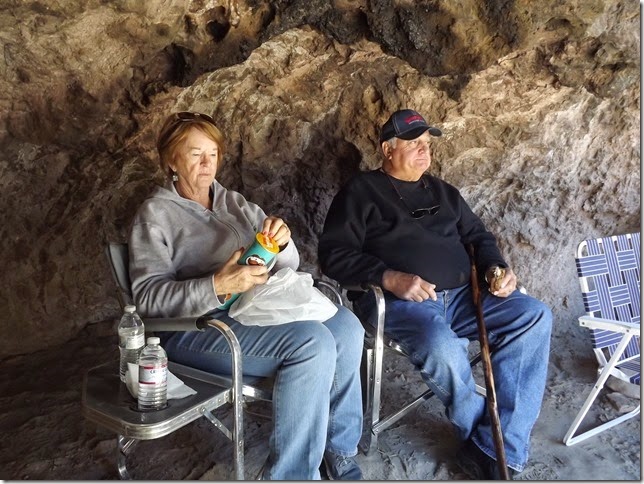 It was a nice day (about 50 degrees) except for a cold wind coming through the canyon. Some of us sat inside the skull out of the wind.