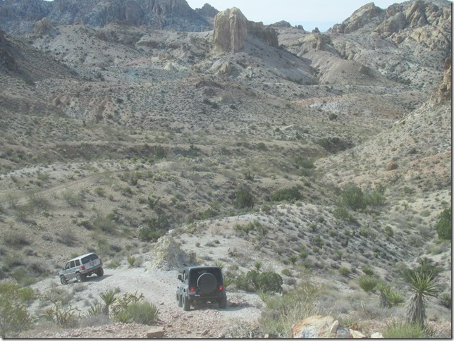 There was a good view from looking west from here. You can just see a thin strip of Lake Mojave in the middle right of this picture.